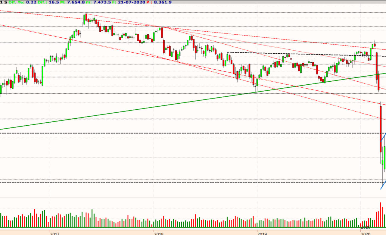 Objetivo: 8.200 puntos; entrada: 7.200 puntos; stop: 6.800 puntos